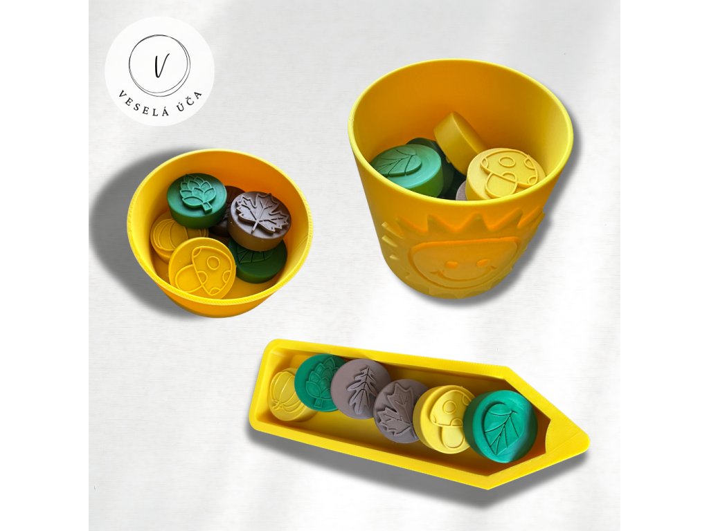 Sluníčkově žlutá sada, která rozzáří každou hru i koutek. Ideální pro smyslové aktivity, třídění, počítání, otisky do modelíny i kreativní tvoření.