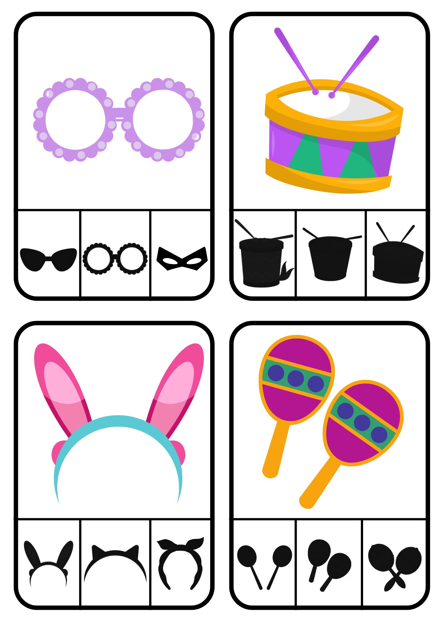 Veselé karnevalové kolíčkovací kartičky pro rozvoj dětí v mateřské škole i doma!