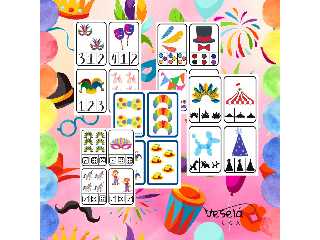 Tento tematický PDF soubor plný klaunů, masek a cirkusové zábavy přináší dětem hravou formou rozvoj matematických i smyslových dovedností. Ideální jako aktivita na karnevalový týden, masopust nebo tematické vyučování.