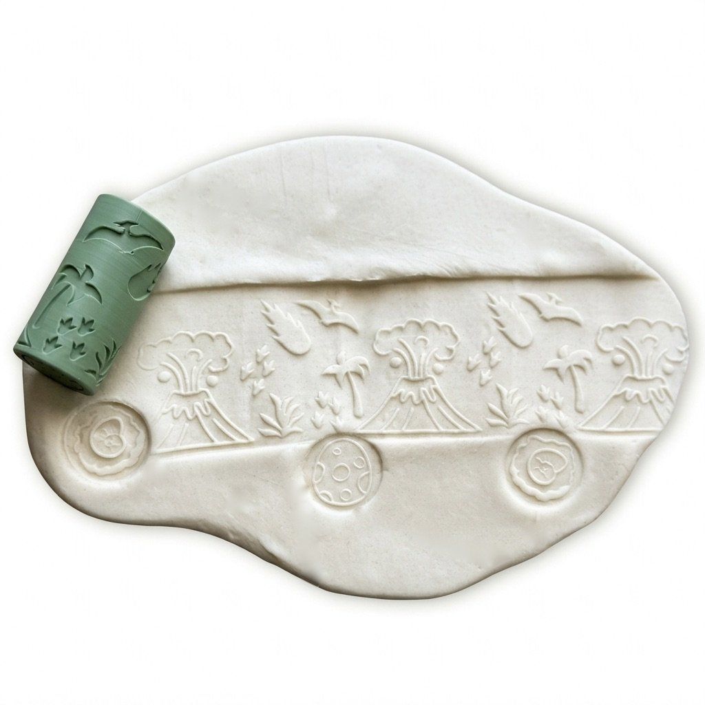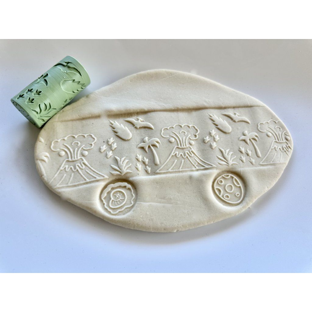 Jediným pohybem vytvoříte v modelíně celou pravěkou krajinu. Od soptících sopek a exotických rostlin až po zkameněliny, dinosauří vejce a blížící se meteorit. Tento váleček je klíčem k nekonečnému vyprávění příběhů z hluboké historie.