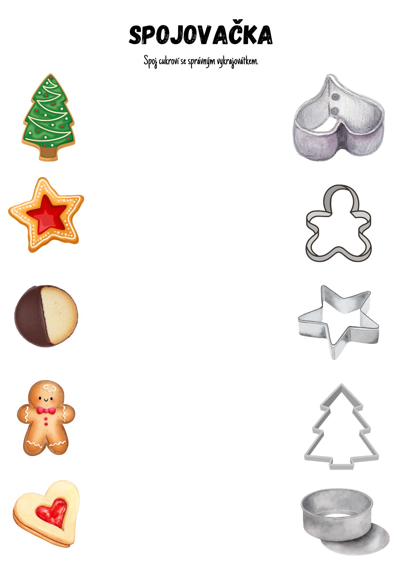 Vánoční sada PDF aktivit „Cukroví“ přináší dětem hravou kombinaci předčtenářských, matematických i grafomotorických úkolů v jednom tématu, které milují všechny děti – pečení cukroví.