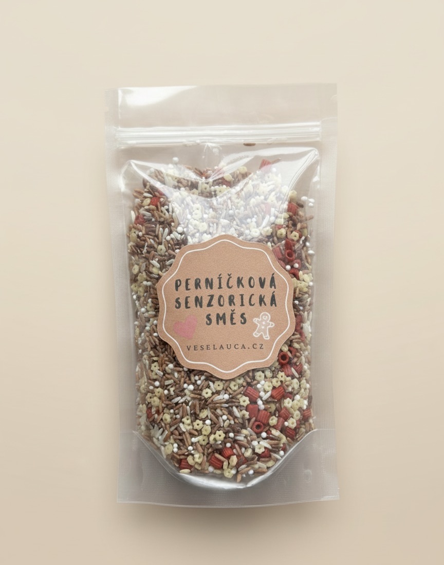 Vytvořte dětem voňavý svět perníčků, Vánoc a zimního tvoření! Perníčková senzorická směs je připravená tak, aby okouzlila všechny smysly – hřejivá vůně perníku a krásná barevnost lákají k objevování, přelévání, tvoření i volné hře.