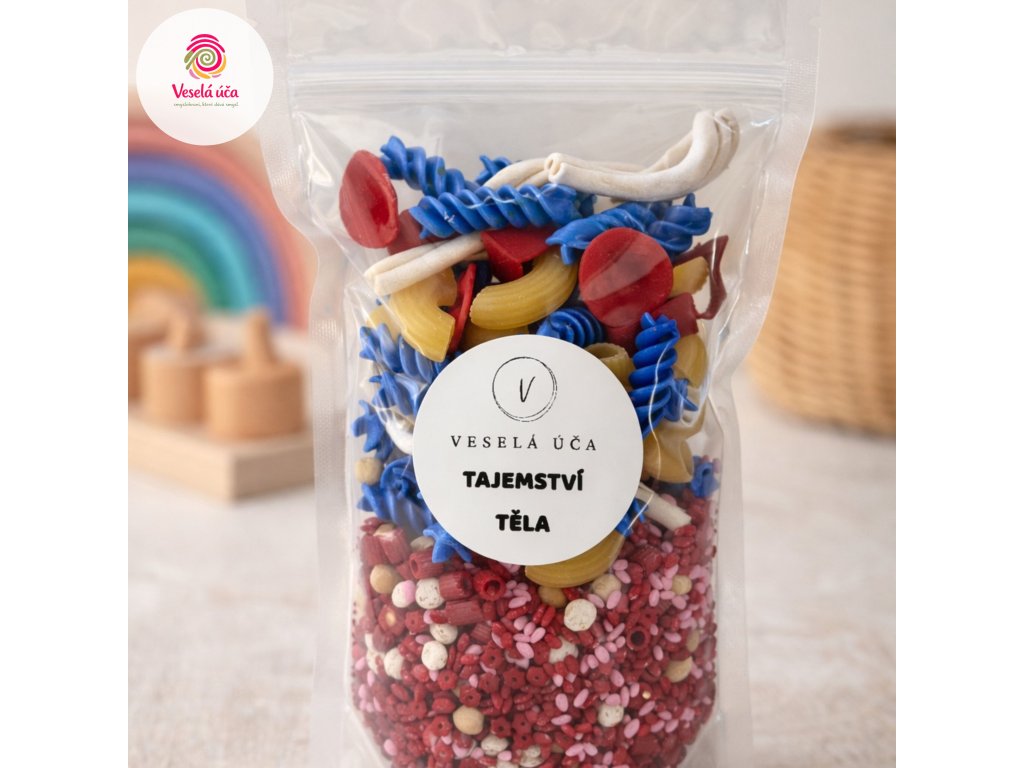 Tato senzorická směs Tajemství těla je navržená tak, aby děti přirozeně zkoumaly, třídily a objevovaly, jak funguje jejich tělo – prostřednictvím smyslové hry, jemné motoriky a fantazie.
