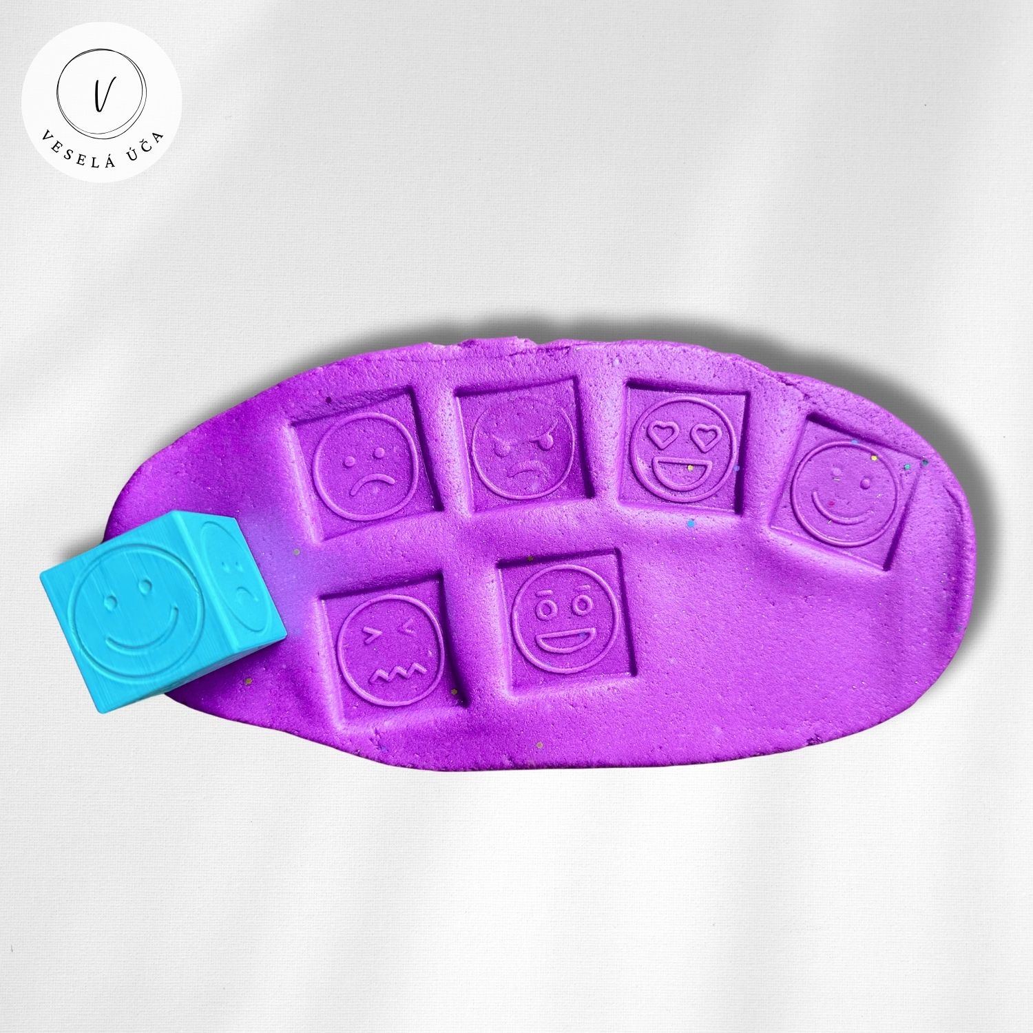 - Emoční kostka (vyrob si sám) – děti si kostku poskládají a pak pomocí hodů trénují pojmenování emocí.