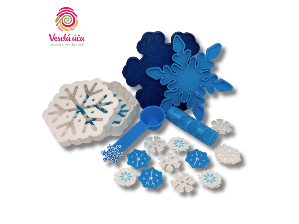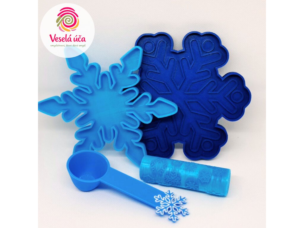 Zimní smyslová sada s vločkami, která děti vtáhne do tvoření, obtiskování a hraní. Ideální pro modelínu, kinetický písek i smyslové směsi.