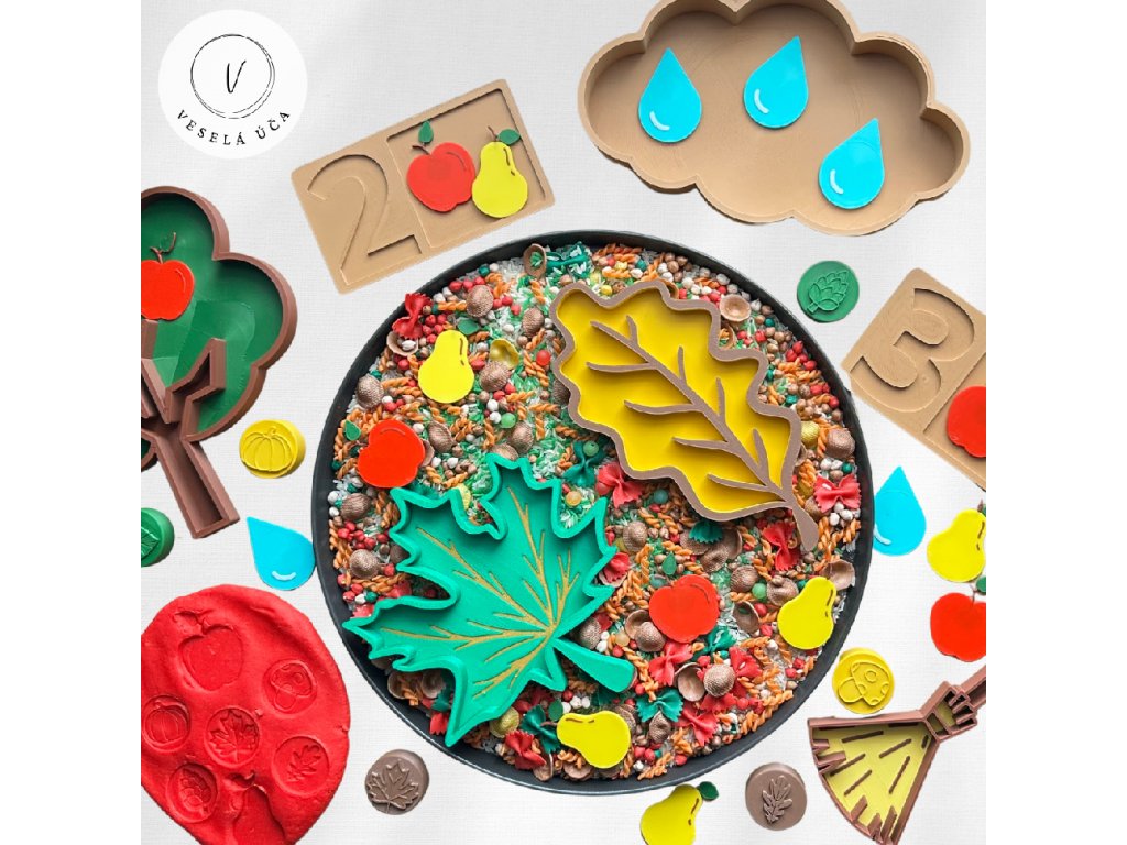 🍃 Objevte kouzlo smyslové hry s vysypávacím tácem ve tvaru javorového listu! Skvělý nástroj pro třídění barev, sypkých materiálů a rozvoj jemné motoriky u dětí od 3 let.