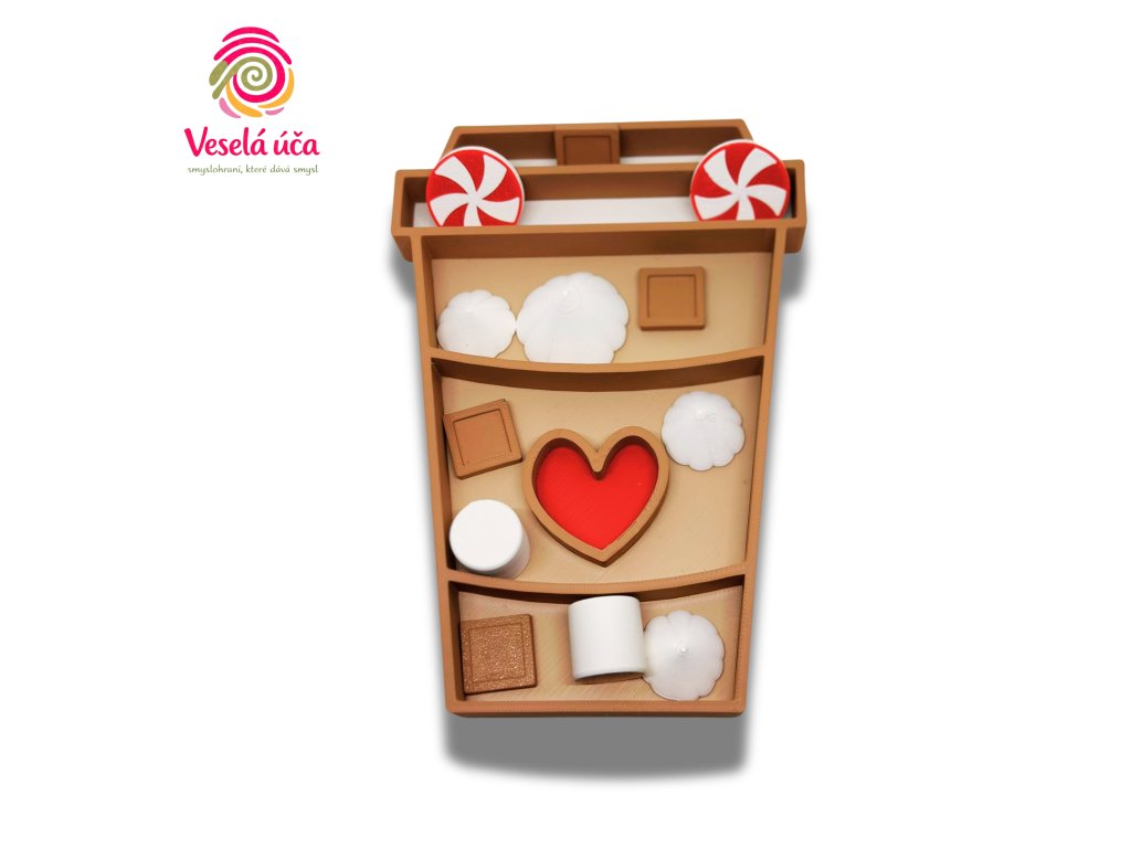 Tento originální vysypávací tác ve tvaru kelímku se srdíčkem je ideální pomůckou pro smyslové hraní, klidové aktivity i tvoření.