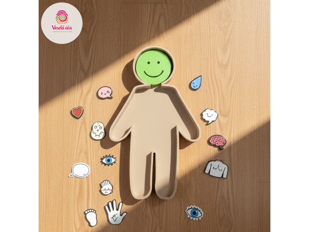 Tento unikátní tác je navržen tak, aby děti mohly vysypávat, třídit a zkoumat, kde v těle co máme – od hlavy až k nohám.