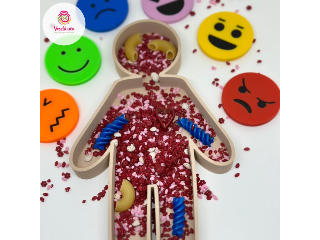 Vysypávací tác Lidské tělo je navržen jako edukativní sensory pomůcka – kombinuje hravou formu, moderní design a pedagogickou hodnotu.