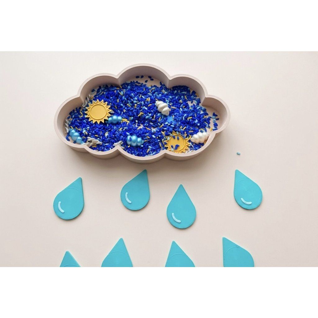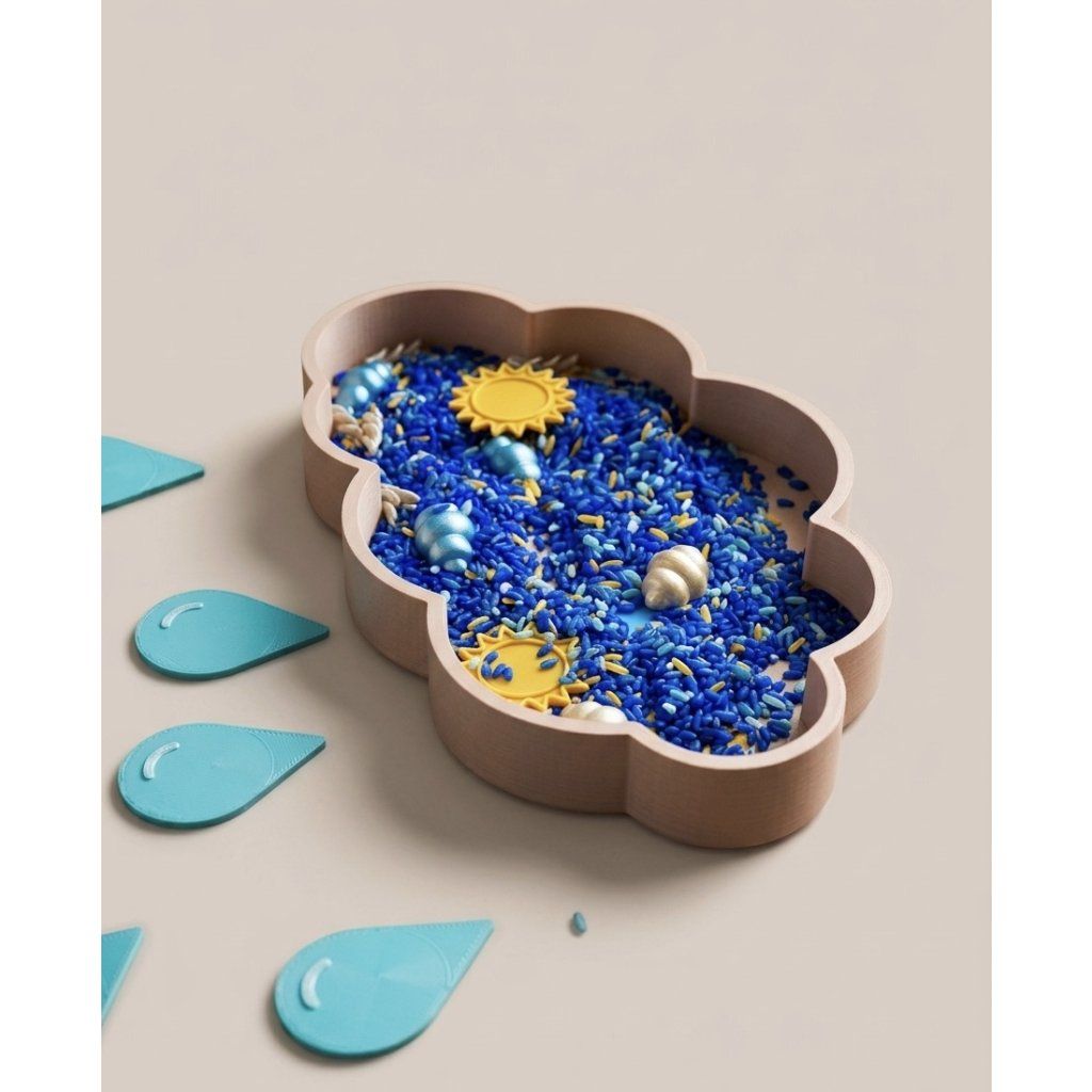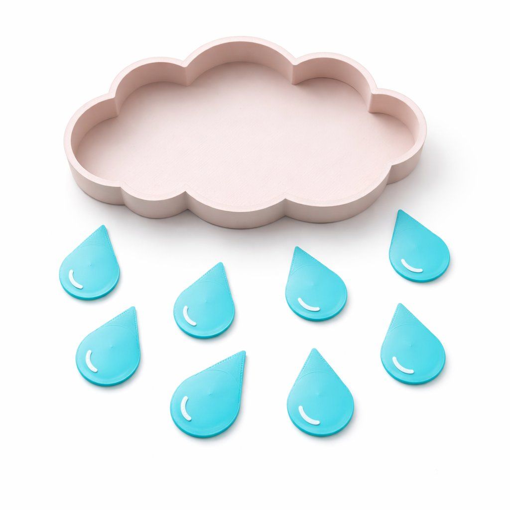 Zabavte malé objevitele stylově. Tento detailní mráček s deseti kapkami je připraven na rýži, cizrnu i modelínu. Je to víc než hračka – je to pozvánka do světa, kde déšť přináší klid.Jednoduchá otevřená hračka, která přirozeně rozvíjí jemnou motoriku, soustředění a kreativitu dětí 3–6 let.