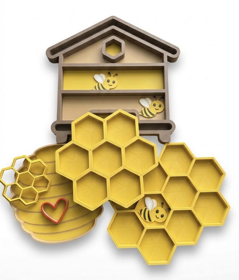 Náš vysypávací tác Plástev je bránou do světa smyslového objevování. Tvar inspirovaný včelím úlem děti přirozeně láká ke zkoumání struktur a vzorů. Je to ideální pomůcka pro sensory play (smyslové hraní), která hravou formou buduje soustředění a trpělivost.