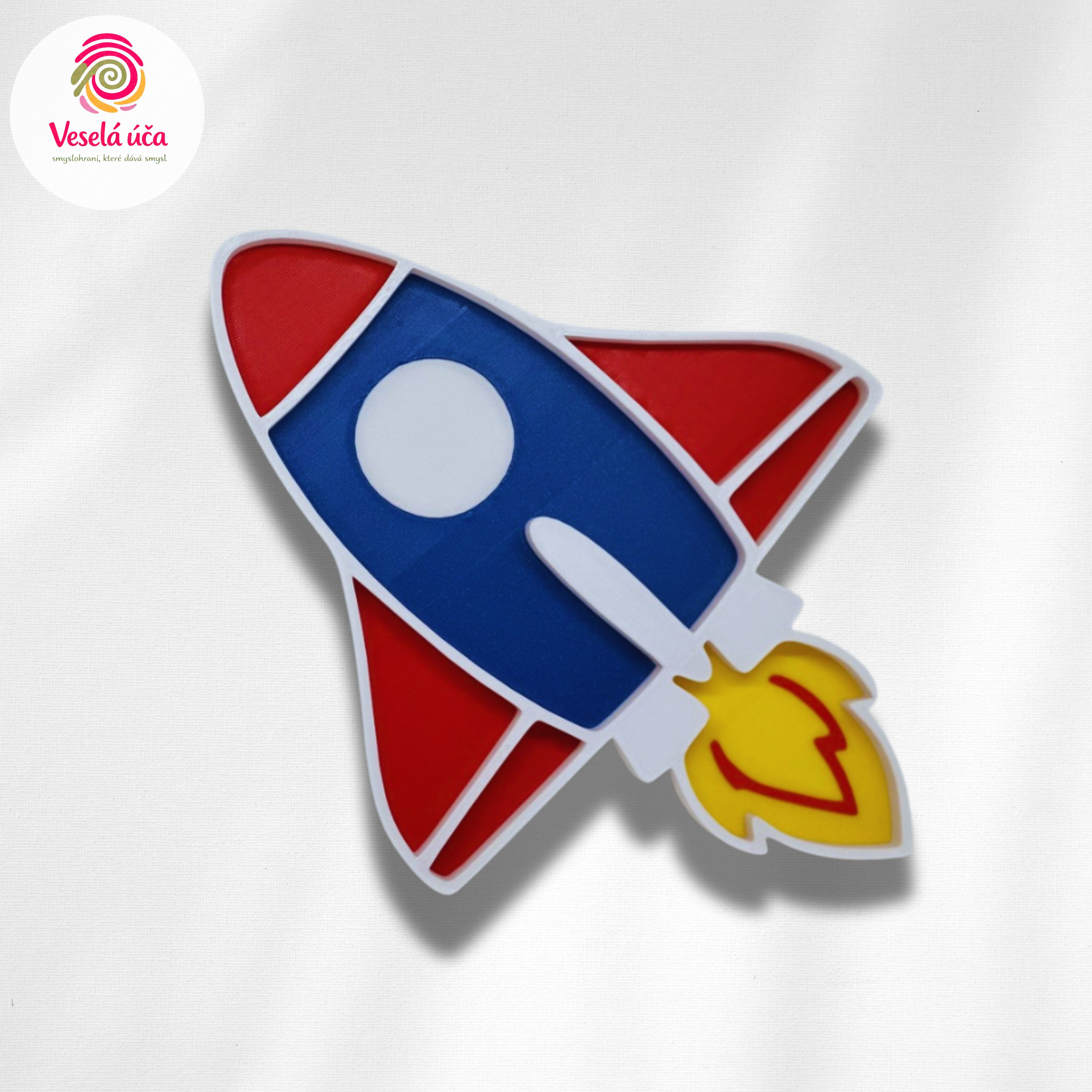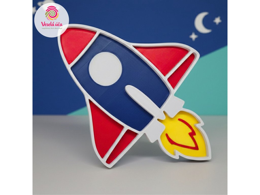 Díky svému čistému tvaru může raketa sloužit i jako dekorace dětského pokoje nebo smyslového koutku. I bez materiálu působí hravě a inspirativně.