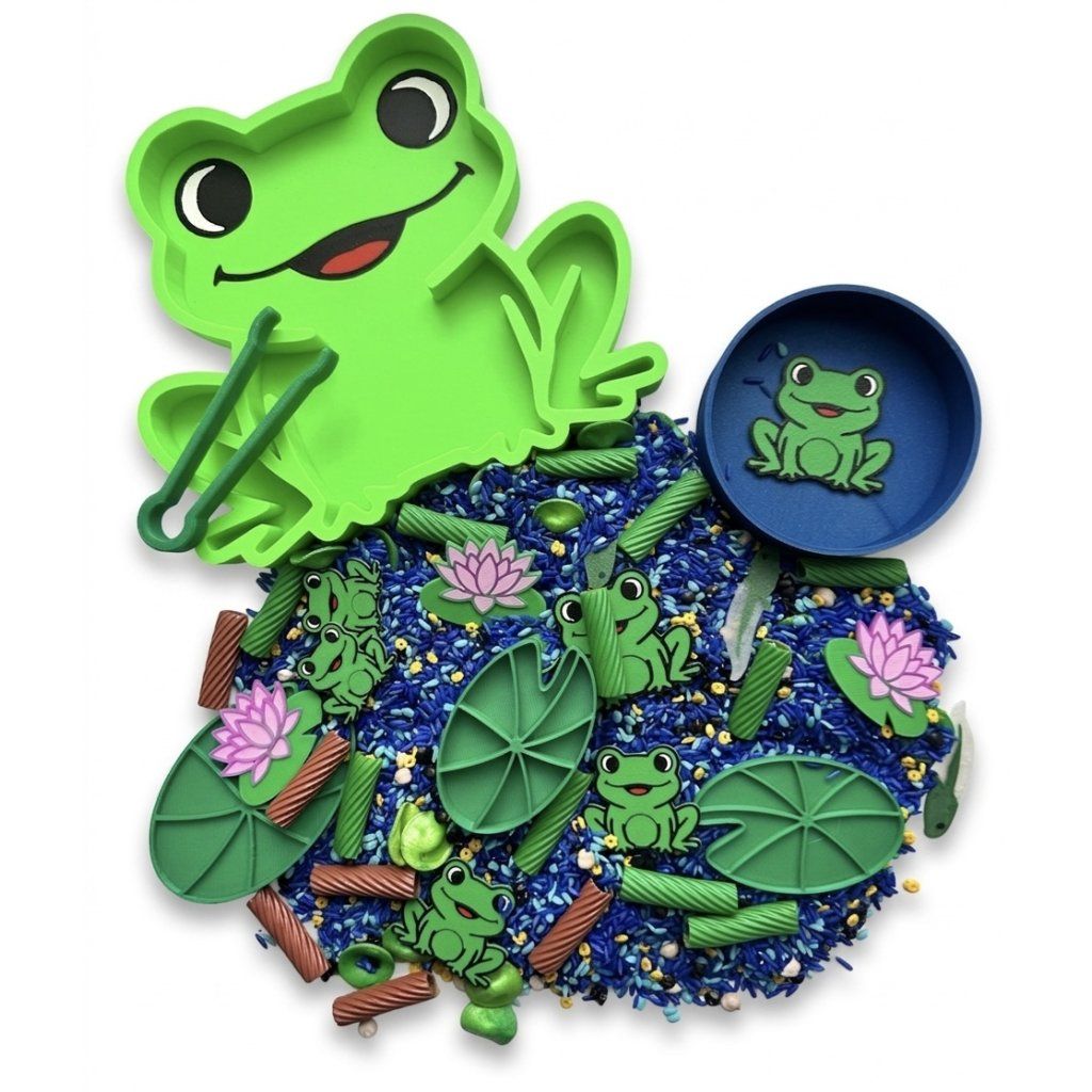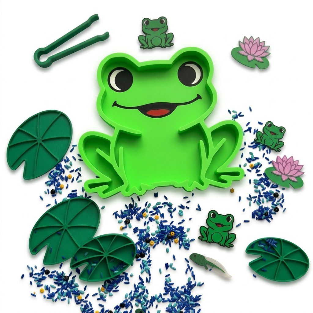 🐸 Obsahuje: Velký tác Žába, 400g směsi, pinzetu, mističku a sadu 24 PLA doplňků (žabky, pulci, lekníny).