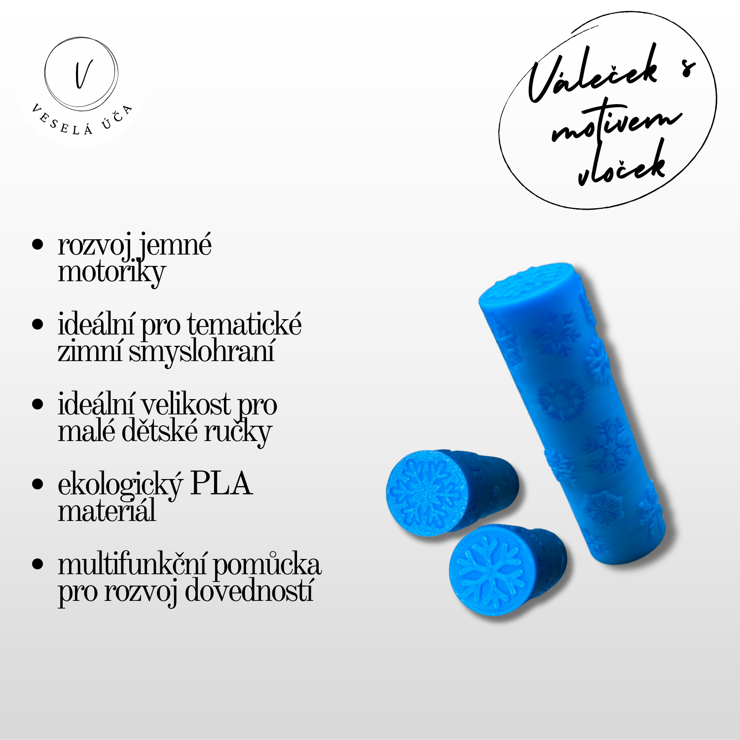 Motiv sněhových vloček - Váleček okamžitě navodí zimní a vánoční atmosféru. Skvěle se hodí k tematickým hrám a přípravě na Vánoce.