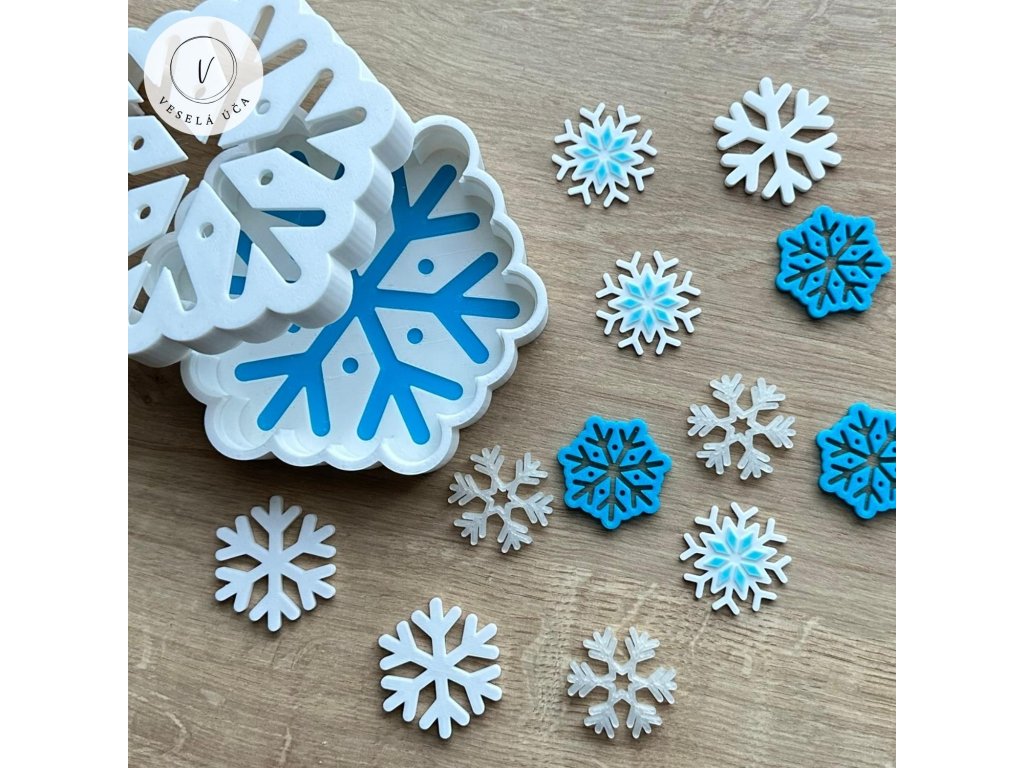Tato zimní senzorická sada spojuje vysypávací tác s víčkem ve tvaru vločky a sadu malých sněhových vloček z PLA plastu. Ideální pro smyslohraní, třídění, tvoření i jemnou motoriku. Děti mohou vločky obtiskovat do modelíny, sypkých materiálů (rýže, mouky, písku) nebo je použít k dekoraci zimního světa.